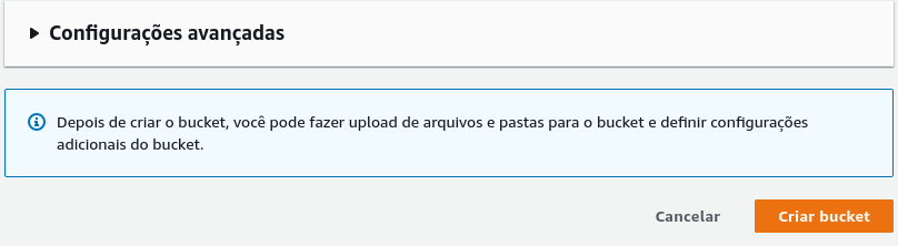 Uma nova página será aberta com algumas informações a preencher, a primeira será o nome do bucket, uma informação importante que servirá para criar o link de acesso ao contêiner. As demais informações podem ser deixadas em padrão. Ao final da página há um novo botão com novamente o nome de “Criar Bucket”, ao clicar no nome a ferramenta de armazenamento o objeto está criado.