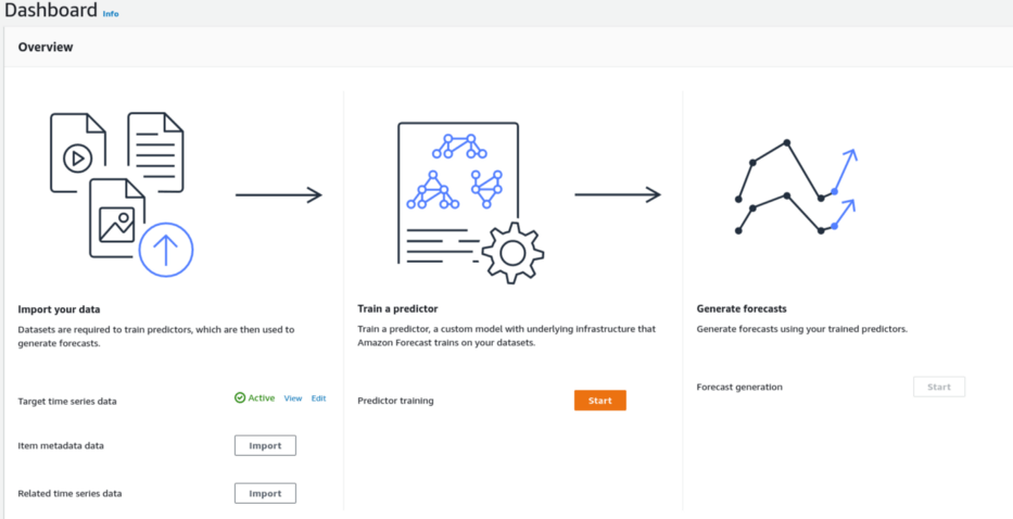 Caso seja necessária uma boa previsão, mas sem grandes detalhes de análise, a ferramenta Forecast pode ajudar. Ela é um sistema de AutoML que treina e faz previsões com uma série de algoritmos. A Amazon utiliza o Forecast internamente para previsão em vendas no varejo e tráfego de web e o disponibilizou ao seus clientes. Neste texto o modelo escolhido é o ARIMA para o contexto de séries temporais de preços de ações.