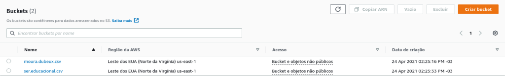 O objeto armazenado por padrão não é público, o link que o aponta está criado para leitura dentro da estrutura AWS pelo dono da conta. O link será necessário para acessar os dados na hora da análise.