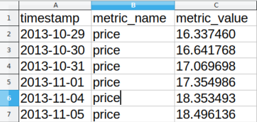 Antes de criar o modelo é preciso e preparar os dados de um modo peculiar (esta é uma desvantagem do Forecast). De posse do arquivo .csv, devem ser excluídas todas as colunas, menos aquelas com datas (“Date”) e preços de fechamento (“Close”), tais colunas precisam ser renomeadas como “timestamp” e “metric_value” – respectivamente. Após isso, uma nova coluna deve ser criada, popula suas linhas com o nome “price”. Esta também deve ser renomeada como “metric_name”. Agora a ordem das colunas deve ser ajustada para “metric_name”, “timestamp”,“metric_value”(A ordem é de menor importância). Tudo pode ser feito através do LibreOffice ou outro editor de textos.